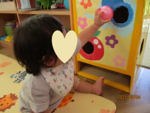 保育者との関わりの中で落ち着き、遊ぶ姿も見られています(*^-^*)