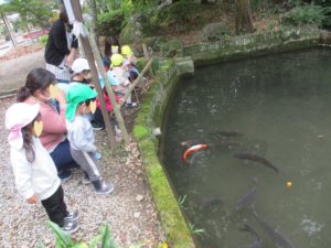 奥には、鯉の池もあり、みんなで覗き込んで楽しみました🎵