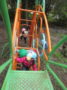 地下道をくぐり、踏切を超え、お目当ての遊具の神社に着くと、一目散❕