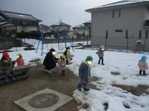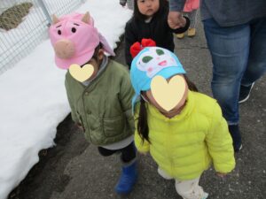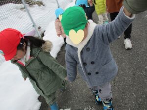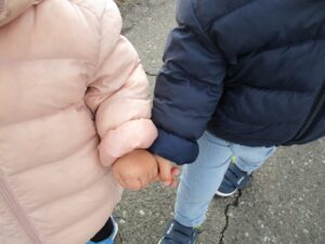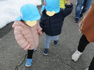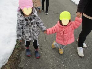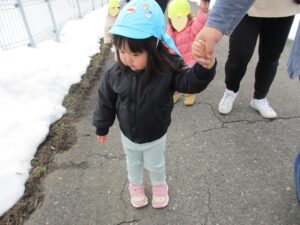 最近のお散歩では、小さいお友達も歩く練習で、お散歩ワゴンを使わずに保育園周辺を歩いています👣 先生と手を繋いで歩く子もいれば、大きい組さんに手を繋いでもらう子もいます。 どの子も、しっかりと手を繋ぎ目的地まで歩けます😊 時々、疲れて座りこんでしまう子もいますが、お友だちに誘ってもらうと、すんなり気持ちが切り替えられるのが不思議です(*^-^*) お天気の良い日は、交通安全に気をつけながら、これからもお散歩を楽しんで行きたいと思います🎵