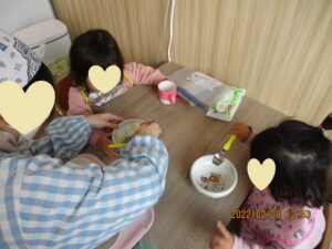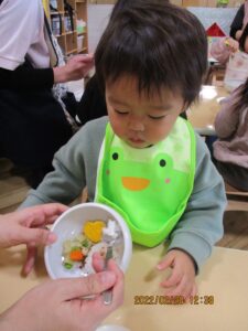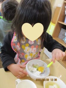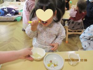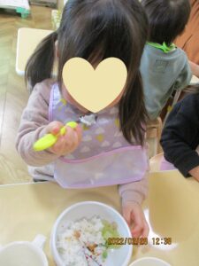 園に通い始めたばかりと比べて、どの子もみんな自分からスプーンを持って、パクパク食べてくれるようになりました。2歳児さんは来月卒園。違う園に行ってもパクパク食べてね💗