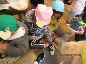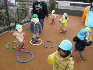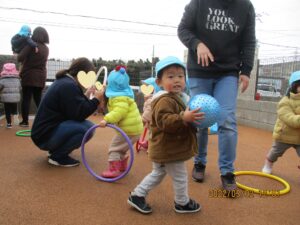 今日も園周辺をお散歩して園庭で遊びました🎵 自分の靴下や上着、帽子をとってお外に行く準備をします🌟 帰ってきてからも自分で靴や上着をしまいます✨ 園庭ではボールやフラフープで遊んで元気いっぱいの子どもたちでした😊💗