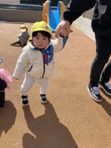 靴をはいて歩けることがうれしくて、ニコニコご機嫌で遊びました😊