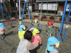 1歳りす組と2歳うさぎ組とで、毘沙門公園までお散歩に行ってきました🎵