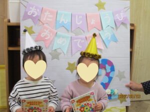 今日は1歳児りす組さんの、2歳のお誕生日会でした🎉