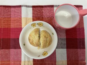 3時のおやつは、メロン🍈パンでした。ザクザクした食感のメロンパンと牛乳のコンビネーションは抜群でした💗