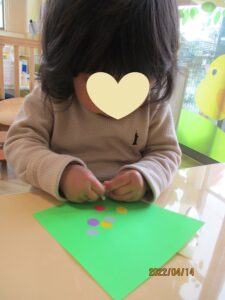 たくさん貼って、「できたよー」とニコニコ笑顔で見せてくれました💕