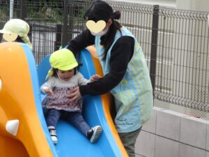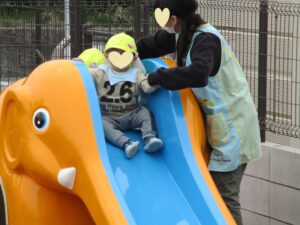 保育者と追いかけっこをしたり、大好きなぞうさん滑り台を滑ったり、思い思いに身体を動かして遊びました😊
