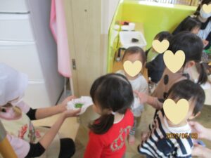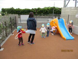 散歩に出かけた後は、園庭でたくさん身体を動かしました🎵 園庭から楽しそうな声も聞こえてきたりと、元気いっぱいなひよこ組さんとうさぎぐみさん😊 育てていたお野菜も収穫し、給食の先生に「どうぞ💗」と渡しに行ったりもしました✨