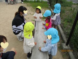 今日は園の近くの公園に散歩に行きました。