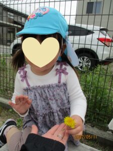 それを見ていた他の子どもたちもマネっこして、保育者やお友だちに「どうぞ」と、タンポポをプレゼントしあっていました😊