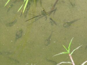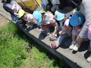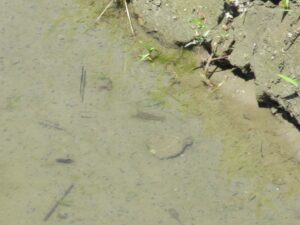 お散歩で園周辺を歩いていると、、、田んぼでおたまじゃくしを発見(゜゜)~