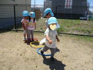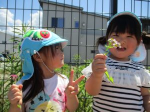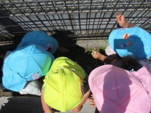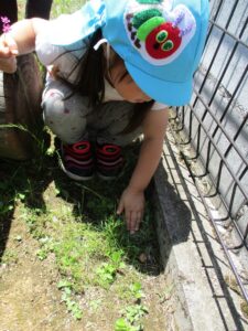 沢山泳いでいるのを見ていると、そこに、「あれ、ザリガニの赤ちゃんだ~!」と保育者。