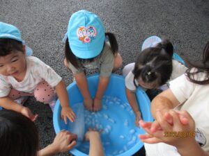 今日は、3クラス合同でシャボン玉と氷遊びをしました😁❄