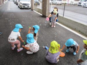 2歳児うさぎ組さんのリクエストでしゃぼん玉遊びをしました🐰