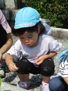 はじめは驚いていた子どもたちですが、だんだん慣れてくると「おっきーなー!」