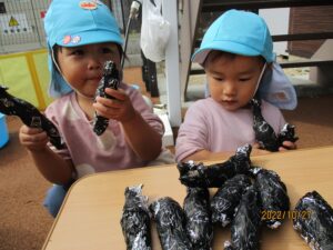 外で、出来たてホカホカの焼き芋を食べ、みんな大満足でした🍠