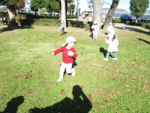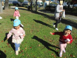 どんぐり拾いをしたり、お友達とかくれんぼや追いかけっこもしたり、たくさん楽しめました💕
