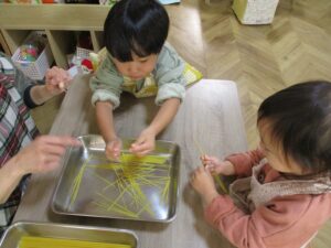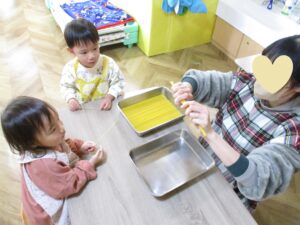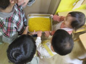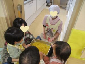 給食の先生のお手伝いを2歳児うさぎ組のお友だちにしてもらいました🐰
