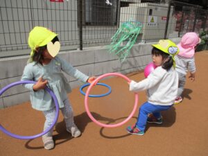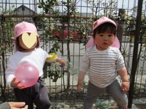 「一つピンク持ってるから、一個ずつにしたら?」と声をかけると、仲良くわけることができました😊