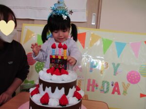 最初は、緊張していたお友だちですが、皆にお祝いしてもらって嬉しそうでした💕