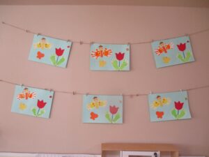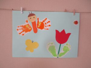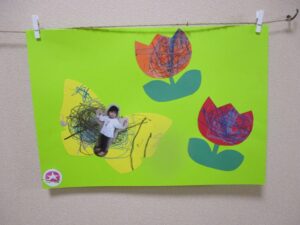 1歳児は、手型でちょうちょう🦋 足型でチューリップ🌷を制作しました💖
