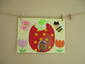 0歳児は、手型を葉っぱに見立てて苺を制作しました🍓✨