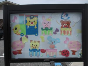 2歳児は、画用紙にお絵描きをし、チューリップ🌷を作り、写真📸を撮ってもらいちょうちょうに変身しました😊🎵 園の前には掲示板があります🎈 四月は、色んな動物たちが電車に乗ってお出かけする壁面です💞 来月は、どんな掲示板かなっ😆❔