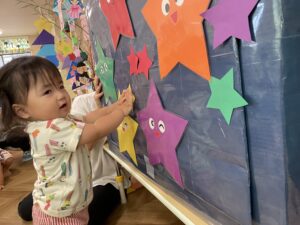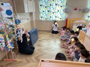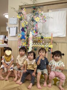 登降園時に自分の笹飾りをお家の人にアピールする姿が可愛らしく、毎朝の日課になっていました😊💕 今日は、七夕の集いを行いました🌟