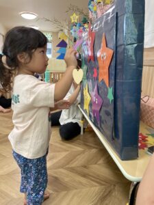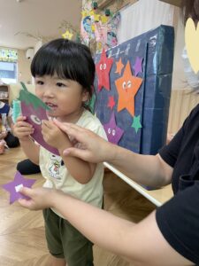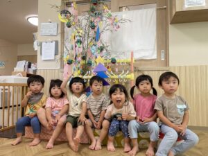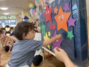 お友だちにもお手伝いしてもらい、天の川を作り、お願い事ができました🥒🍅🍆