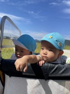 心地良い秋の風を感じ、ウトウト眠ってしまう子や興味のある物を見つけ手を伸ばす子😊✨それぞれに楽しむ姿が見られました🍁