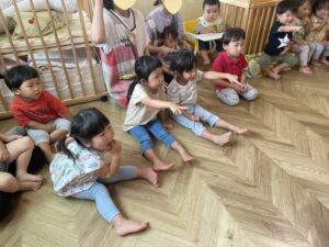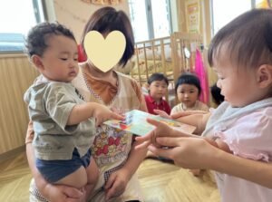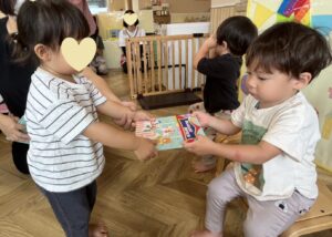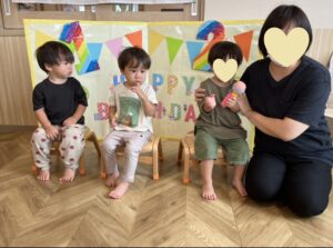 今日は10月のお誕生会がありました🎉 前に出ると緊張した様子でしたが、お名前を呼ぶと「は~い!🤚」と元気にお返事してくれました✨ 皆からのお歌や誕生カードをプレゼントをもらう事には、すっかり緊張もほぐれ「あはは😆」と笑顔に💖