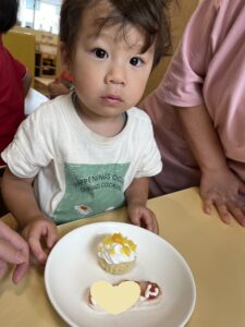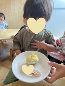 15時のおやつには本物のケーキが登場し、美味しくいただきました🍰