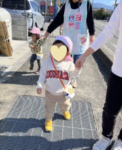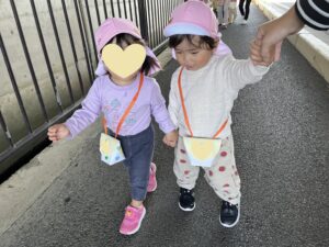 昨日のりす組の様子です😊 お散歩バッグを持って、お散歩に行きました✨