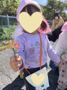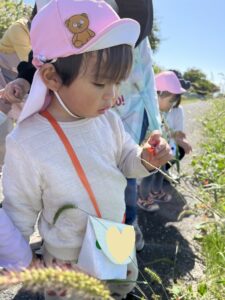 虫さん達とお別れした後は👋赤色や青色のお花、ねこじゃらしを見つけることができ、たくさん摘んでかえりました🌼お土産がいっぱいでき、早く見せたい!😆と嬉しそうでした🥰