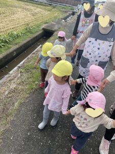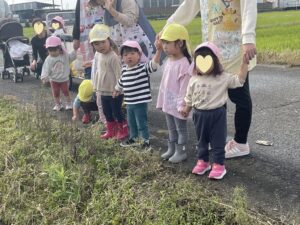 今日は、全クラス合同で出かけたので、うさぎ組さんにりす組さんの手をつないでもらって歩きました✋✨
