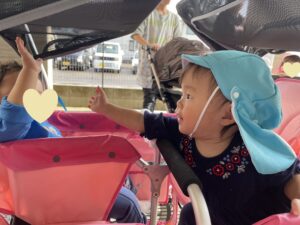 ちょうちょを見つけたり、高速道路のバスやトラックに手を振ったりして、ぐるりと園周辺を散策しました😊🎵