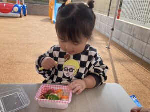 保育園に戻ってきてからは、園庭でお弁当を食べました🍙じゃじゃーん✨とお弁当が登場すると「わぁー!😆」と大興奮💕たくさんおかわり出来ました👏✨