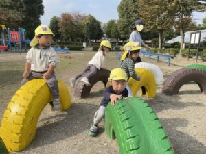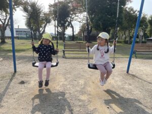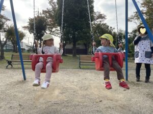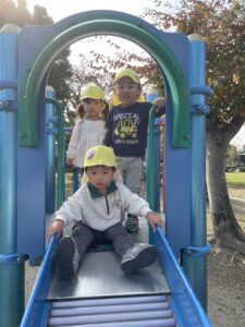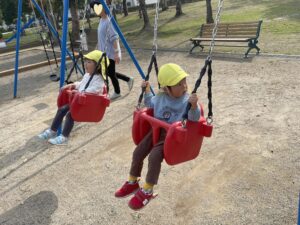 昨日はミニ遠足で、2歳児うさぎ組は、日電公園へ遊びに行きました🌞