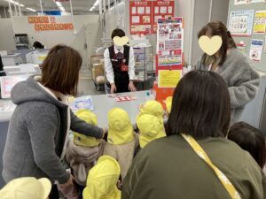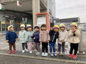 年賀状は、二歳児さんが代表して買いに行ってくれました✨ 局員さんに「年賀状ください」「ありがとう」と声を合わせ元気よくいう事ができました👏