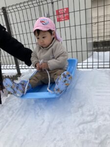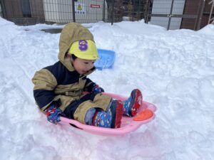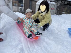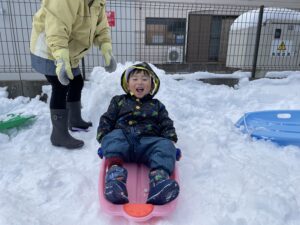 最後に、すべり台を作ってもらい、そりで豪快にすべり大喜びでした⛄🎵✨