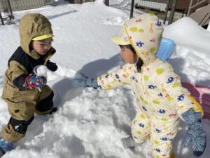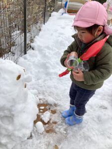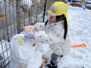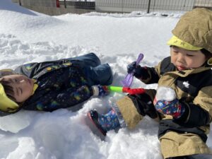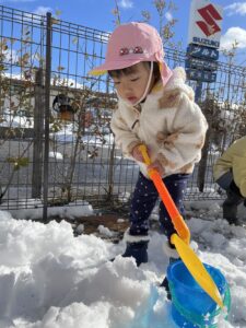スコップで掘り起こしたり、足で踏みしめたり、雪だるまをつくったり🎵、雪遊びを満喫しました💖