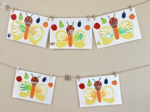 0歳児ひよこ組は、カラフルな手型で、きれいなちょうちょの羽を表現しました🌈