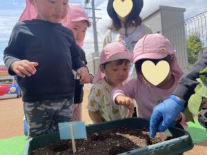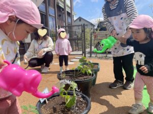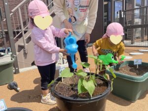 自分たちが植えた苗に愛着を持って育てていくと共に、成長過程を観察したり、収穫した野菜でのクッキングを通して、育てる事の楽しさや、食材へのありがたみへと繋げていきたいと思います😊🍅