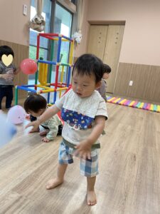 だいぶん歩けるようになったので今度は走ろうとする子、など、動くのが楽しくて仕方ない子ども達です💕