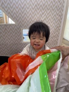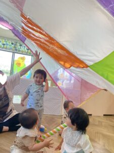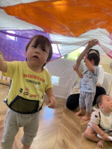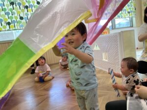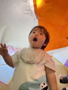 その後は、カラーポリ袋をつなぎ合わせたパラバルーンで遊びました😝
