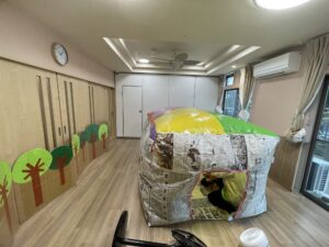 秘密基地のような空間が落ち着くようで、ゴロンと寝転び、くつろぐ子もいたりと楽しそうに遊ぶ姿が見られました🎵