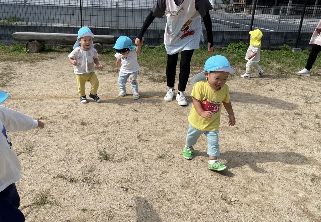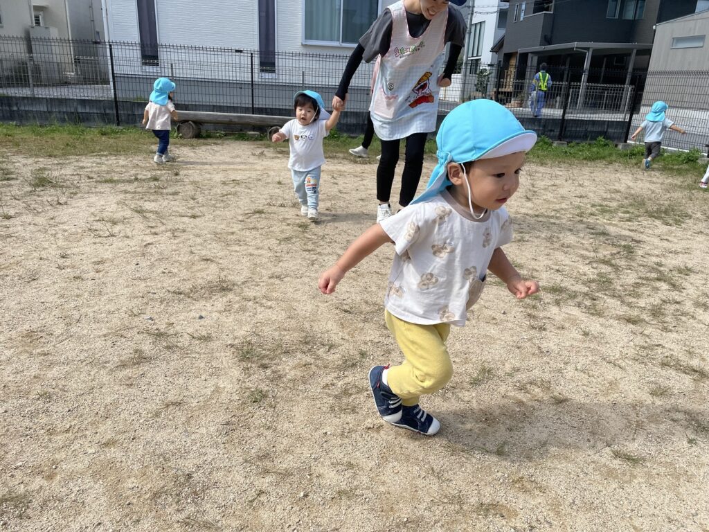 『道路は保育者と手をつないで歩く』がお約束ですが、公園は自分の好きな所へ走っていけるので、みんな大喜び🎵