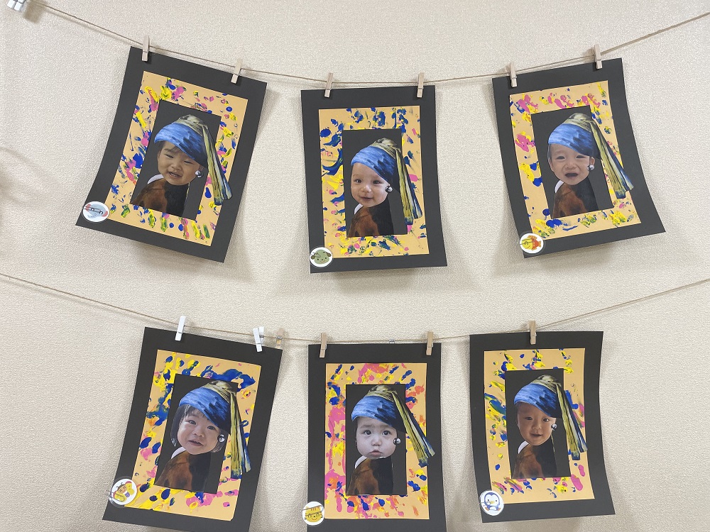 0歳児ひよこ組は、青ピンク黄色の絵の具を使い、自由にスタンプを楽しみました🎨手の平に絵の具をつけ、ダイナミックにスタンプをする子もいたり迫力のある作品が出来上がりました💕