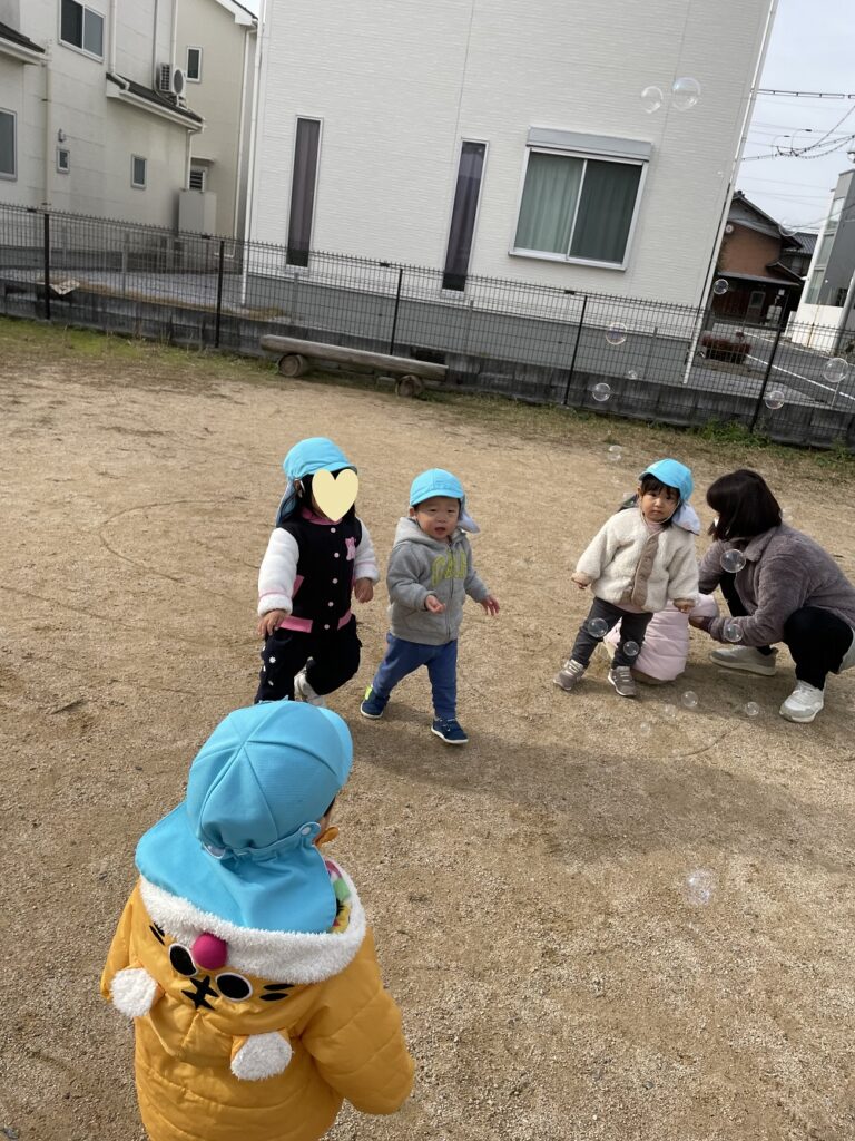 たくさん集中した後は、公園で身体を動かして大発散💨シャボン玉を追いかけていっぱい走りました😆寒さに負けず元気な身体づくりもしていきたいと思います💪